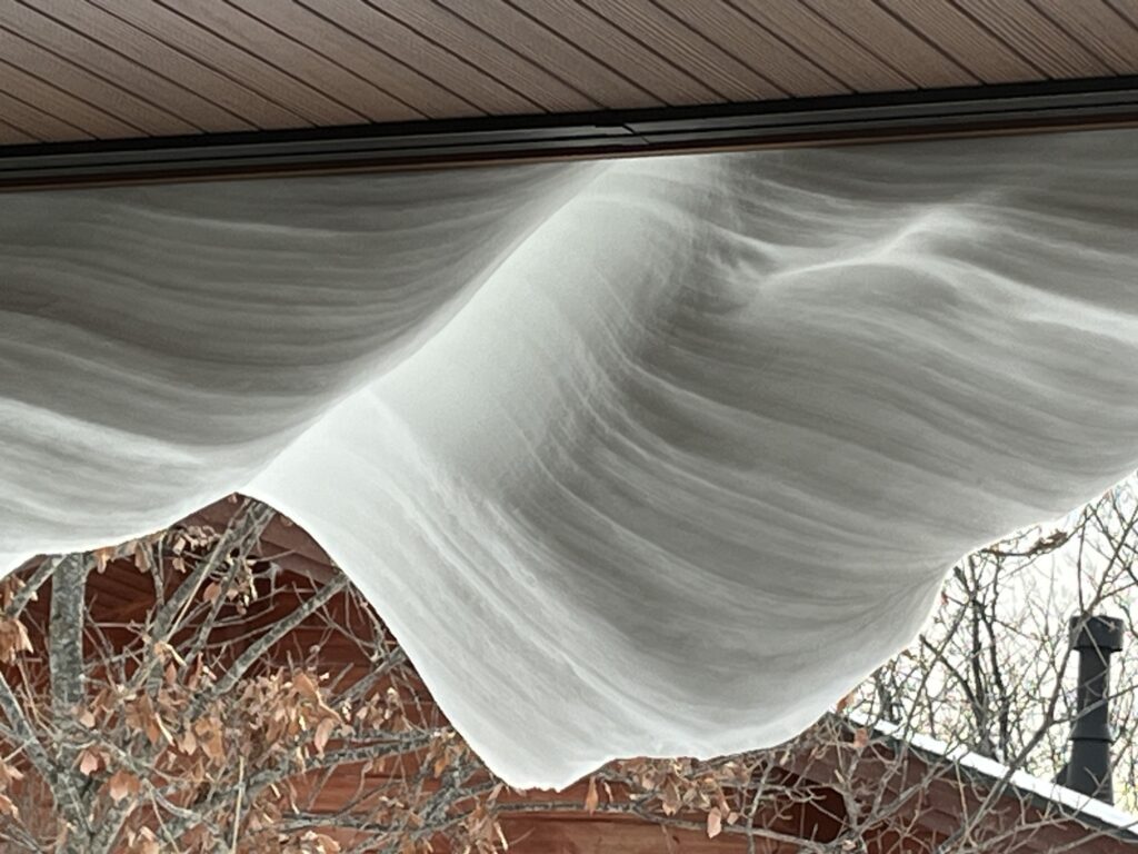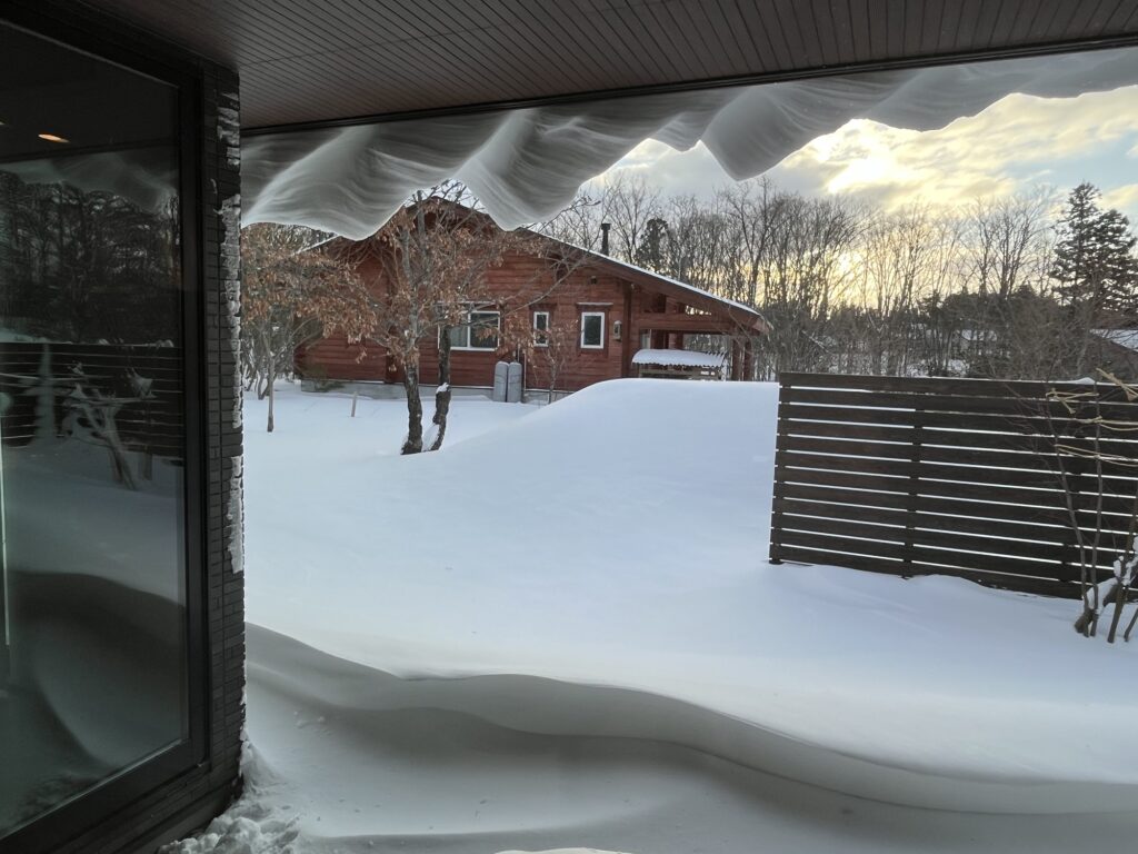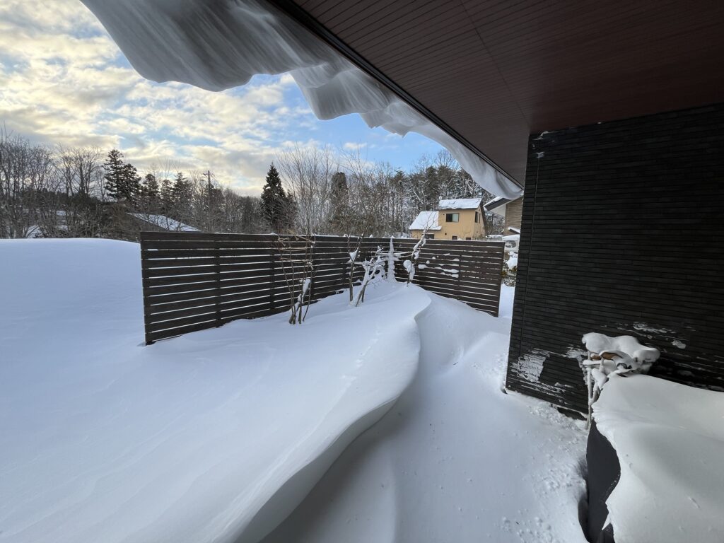 屋根からの雪がこんな形になるなんて。