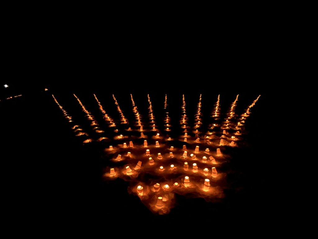 こんなにたくさんのキャンドルつけるのが大変だろうな思って見てましたが、 来場者がキャンドルに火をともしたことを後から知った時は、来年は花火に 間に合わせるどころかキャンドルに点灯したいと思いました。