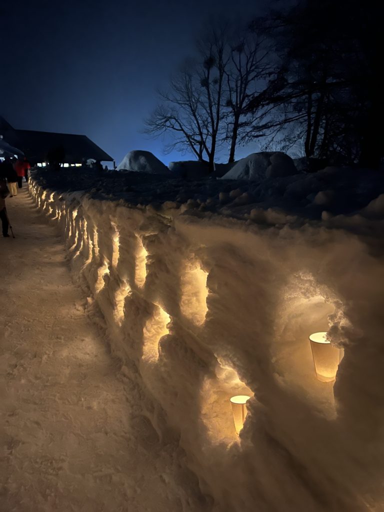 雪原に並べた約3千本のキャンドルは想像より素晴らしかったです。