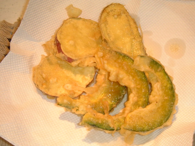 <野菜の天ぷら> 唐揚げをした週は揚げ物三昧です(鍋1週間そのまま) |