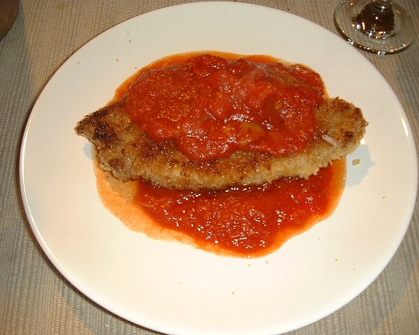 <ミラノ風カツレツ> オリーブオイル、トマトソースをたっぷり使ったカツレツです。 |